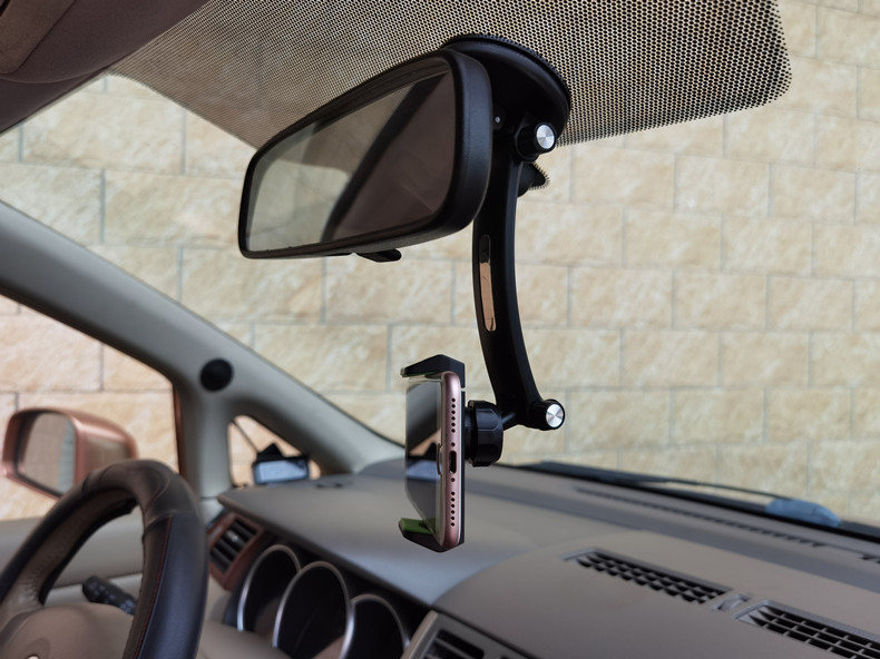 視界を妨げずに端末を固定でき、運転中の画面確認が快適になります。