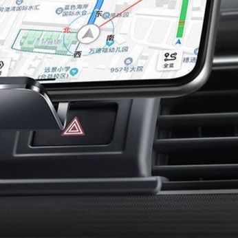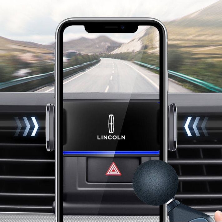エアコン取り付けタイプの車 スマホホルダーで、重力感知センサーにより端末を置くだけで自動的にアームが閉じて固定します。