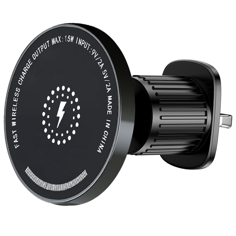 強力な磁石で携帯端末をしっかり固定できる車 スマホホルダーです。 15ワット高速充電に対応し、運転中も安心して端末を充電できます。 360度回転可能な設計で視認性も抜群です。 吸盤式とエアコン吹き出し口取付の2通りの設置方法が選べます。 アルミ合金素材を採用し、耐久性に優れた作りになっています。 各種無線充電対応端末に使用できる便利な車載アクセサリーです。