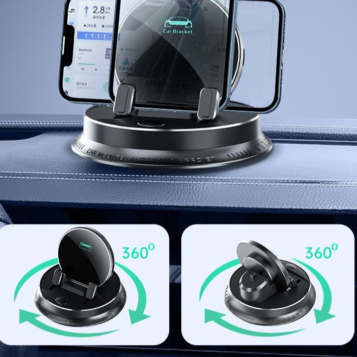 超高感度センサー搭載で端末を置くだけで自動挟み込み機能が作動する車 スマホホルダーです。 吸盤タイプなので計器盤に跡を残さず取り付け可能で、取り外しも簡単に行えます。 360度回転台座により縦横自在に角度調整ができ、運転中の視認性を高めます。 環境配慮型のゴム材を使用し、計器盤を傷つけることなく強力に固定できる優れた商品です。
